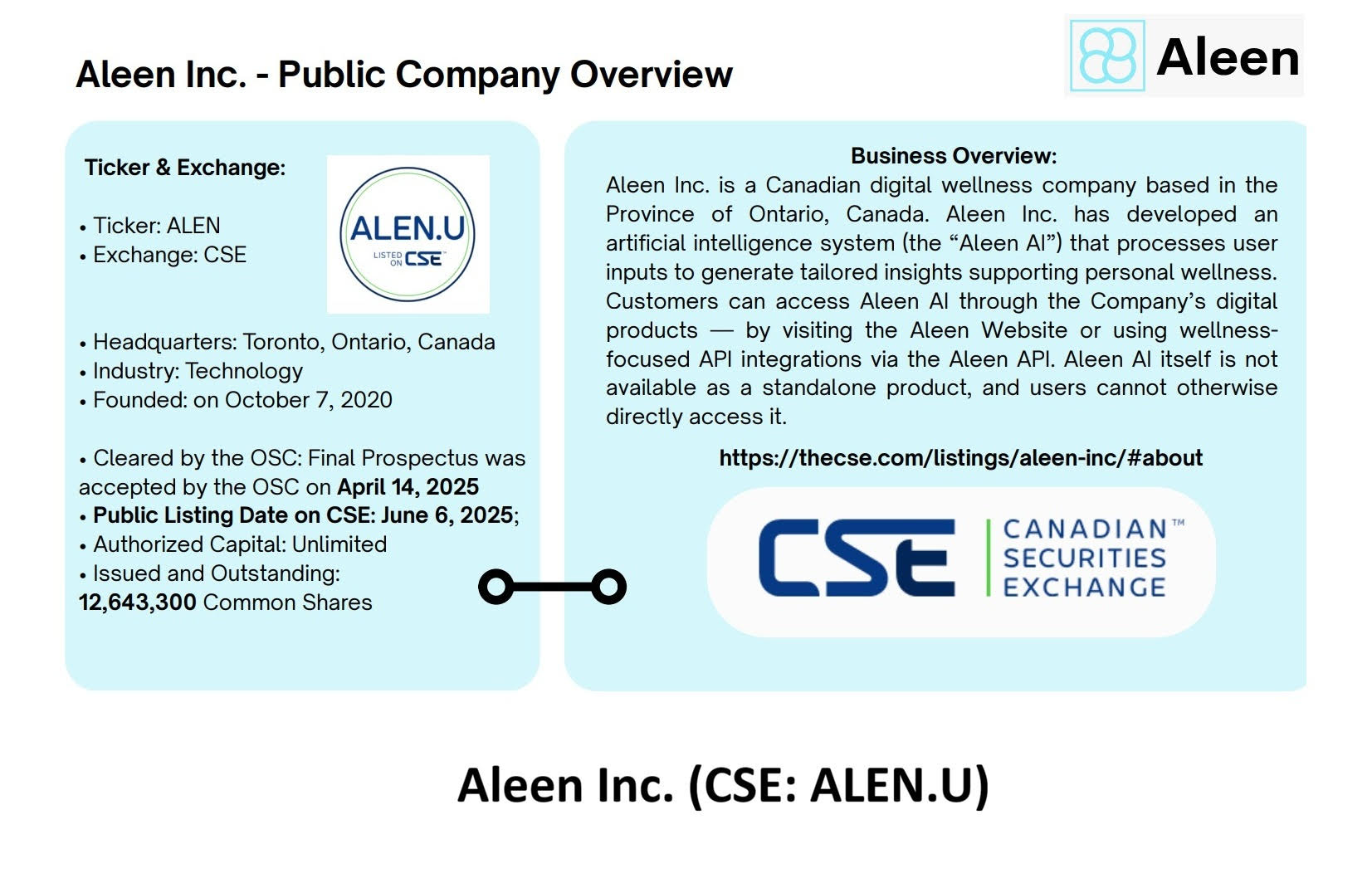 Aleen Inc. (C S E: ALEN.U)