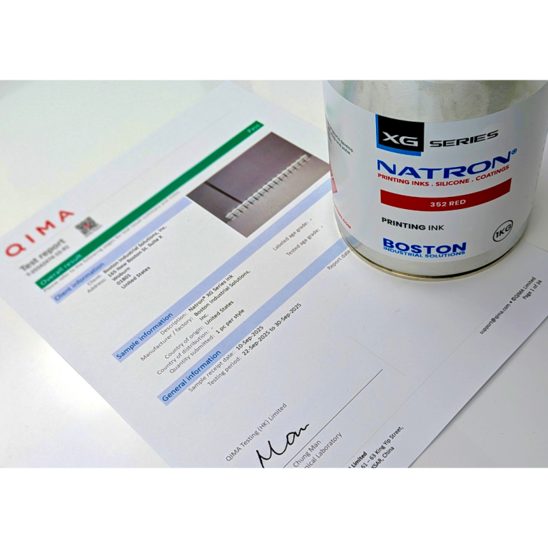 WOBURN, Mass. - EntSun -- Boston Industrial Solutions, Inc. is proud to announce that the Natron® XG Series ink has passed a comprehensive series of international safety certifications and compliance tests. The ink was rigorously tested by the QIMA Testing Center between September 22 and September 30, 2025, and held to global safety standards for children's products and toys, jewelry, as well as general environmental compliance.