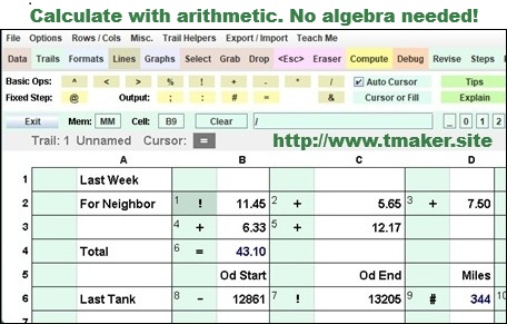 Is the world insisting that you master algebra to use and maybe buy a spreadsheet that relies on it? Would you rather have fast and easy using concepts you know to do the math of a typical household? Guess what's new? You've got a friend in T/Maker!