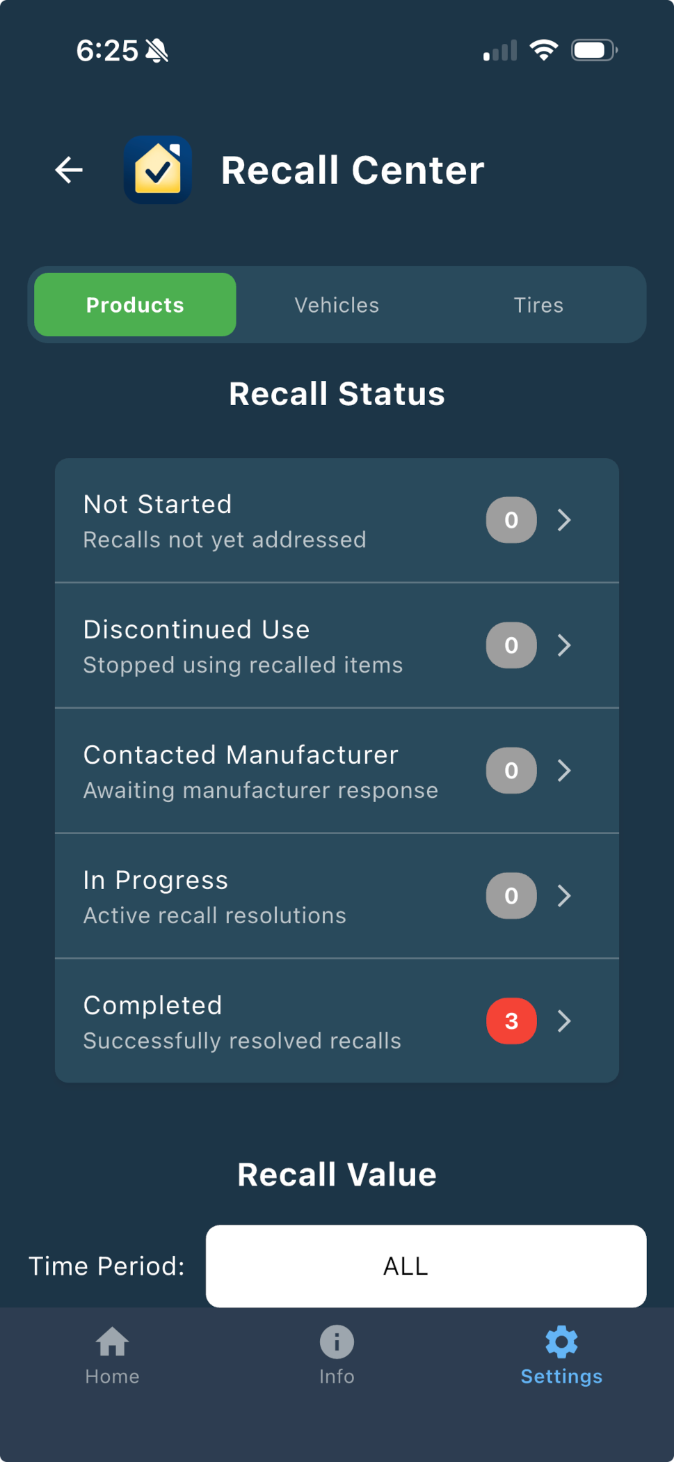Step 4 — Resolve & Track: The Recall Center converts each alert into trackable action steps with completion tracking, verified manufacturer contact information, pre-filled claim templates, and automatic refund and repair value calculations.