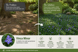 - Vinca minor: A reliable, evergreen carpet for deep shade.