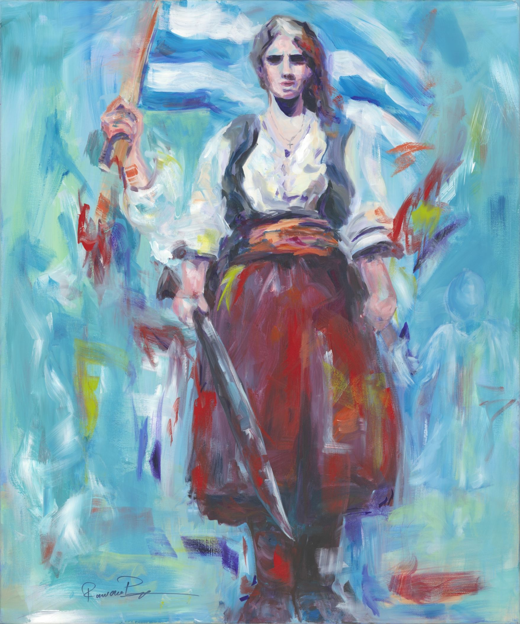 #WeAreGreekWarriors: From the Greek Revolution to Today: The Power of the Heroines of 1821 Lives in Every Woman presents a compelling body of work by contemporary artist Ramona Pintea, whose large-scale paintings reimagine historical female figures with strength, complexity, and emotional depth. The exhibition brings together contemporary painting, bold prints, and cultural programming to revisit a moment in history through a different lens, one that is intimate, human, and strikingly relevant today.